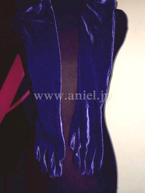 ネイビーブルーのベルベットがとても上品でシックな佇まいのドレスです。