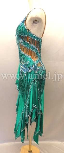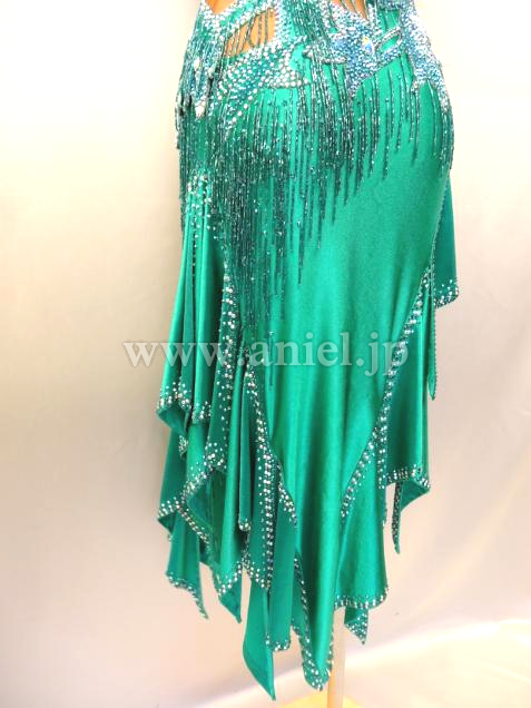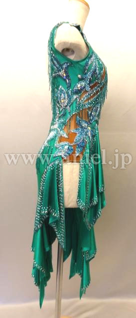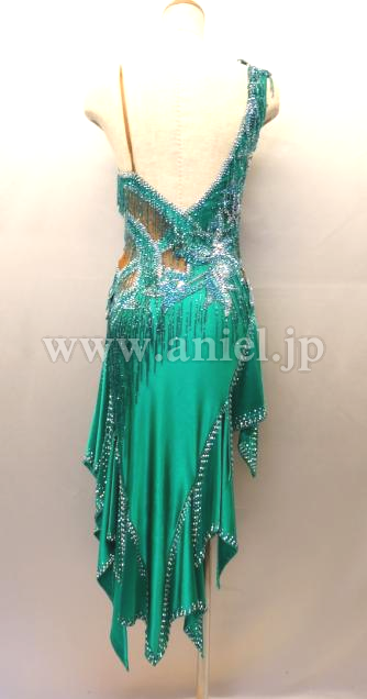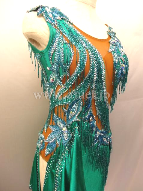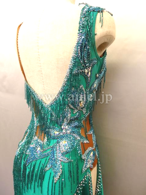 美しいエメラルドグリーンのドレスです。