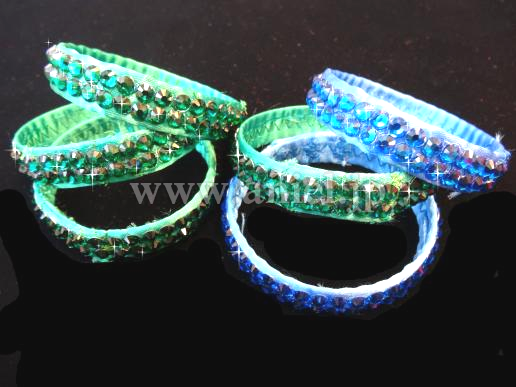 モチーフは青からジェードカラーのグラデーション生地でストーンがよく輝きます。