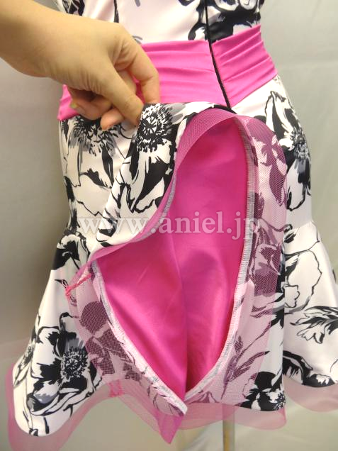 裏地には鮮やかなサテンのショッキングピンク生地が使用され踊るとパッと目に入り華やかです。
