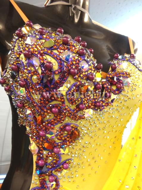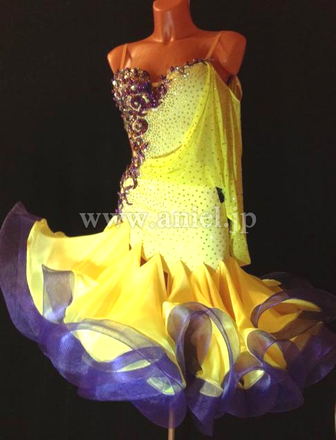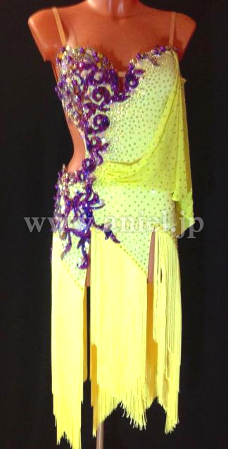鮮やかな黄色に紫のコントラストが美しいドレスです。