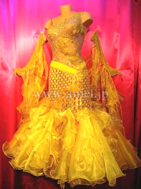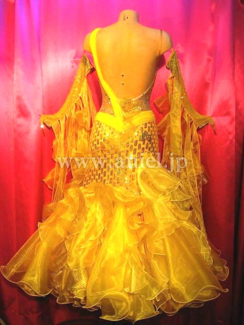 ワンショルダーデザインに個性的な布を使用した凝った作りのスカートなどアトリエの技術を詰め込んだドレスです。