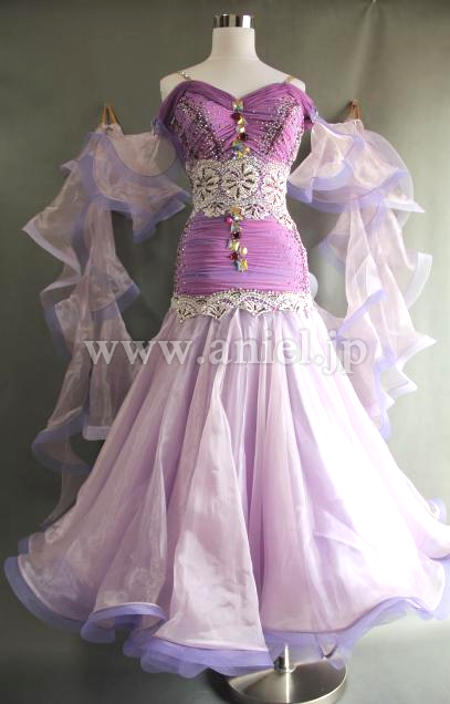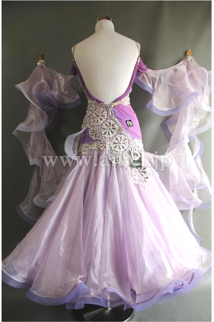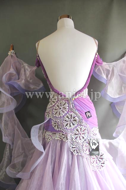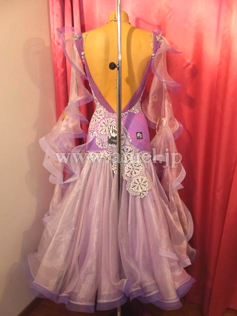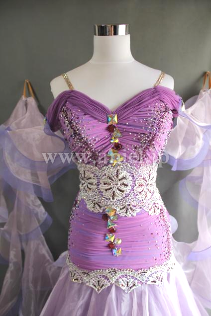 上品で美しい薄紫のボディにとても美しいレースを配置したドレスです。