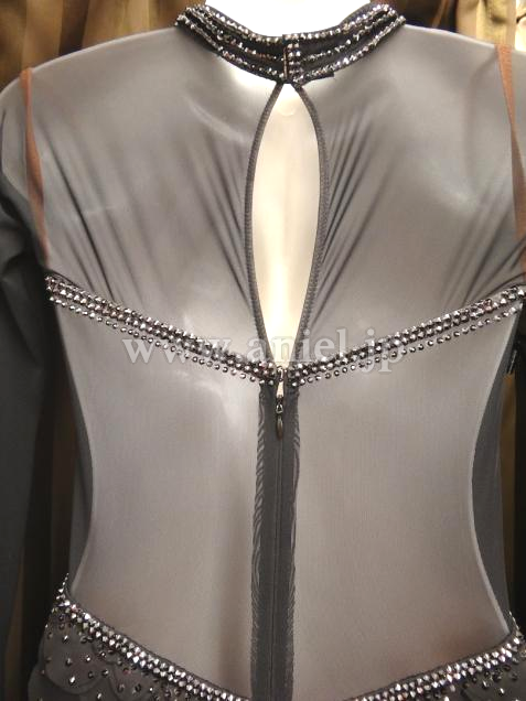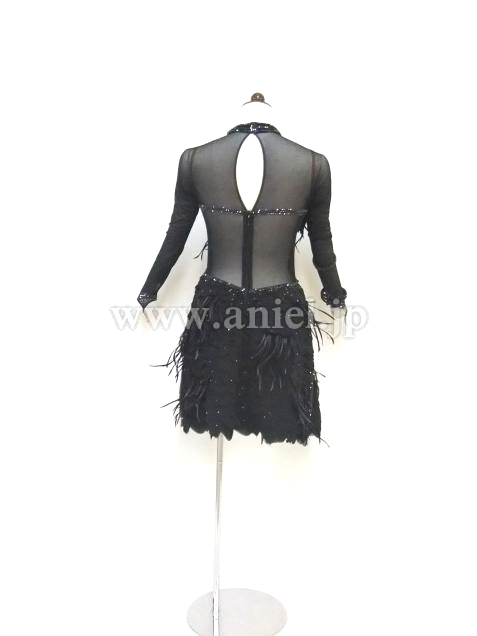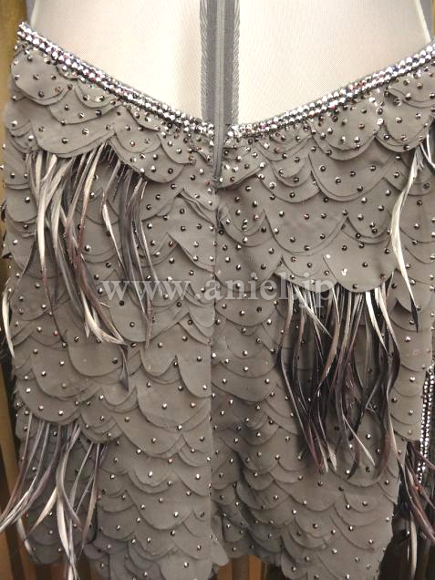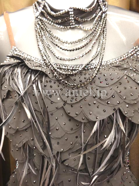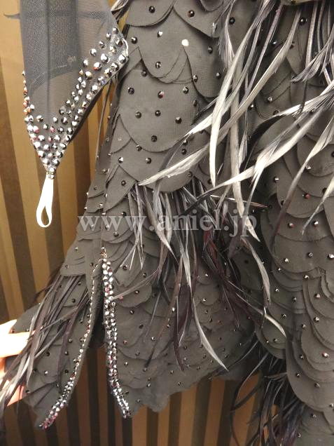 イギリス・クリスアン社製ドレス。3Dの生地に羽根がついています。立体に重ねられた生地が個性的です。