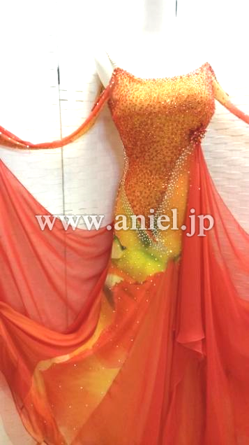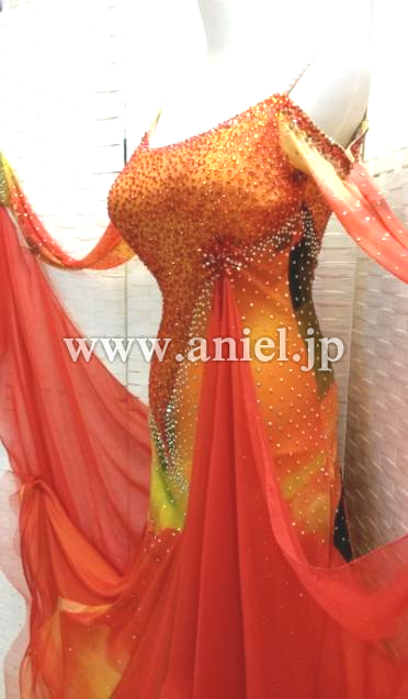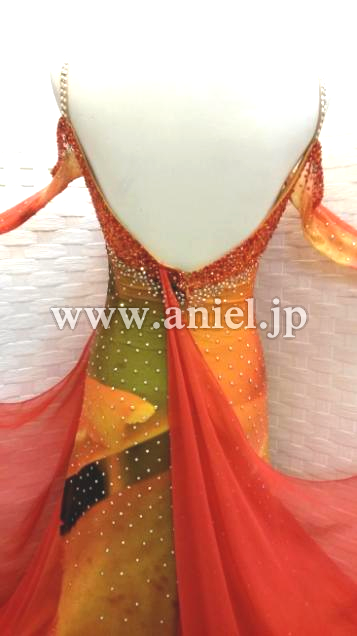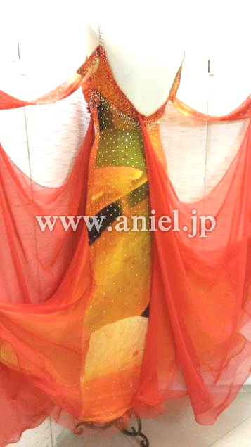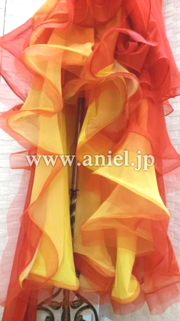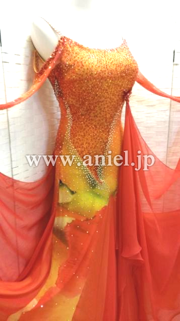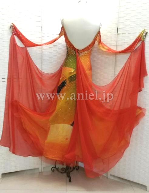 ボディからスカートにかけて美しい柄生地が使用されていて個性的です。