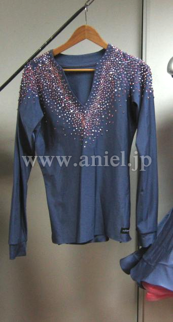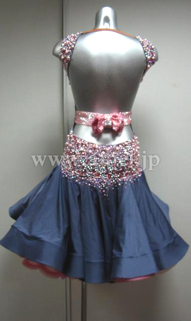 クリスアンの生地に胸元、ヒップはスワロフスキーストーンとパールがびっしり貼られ非常にゴージャスです。