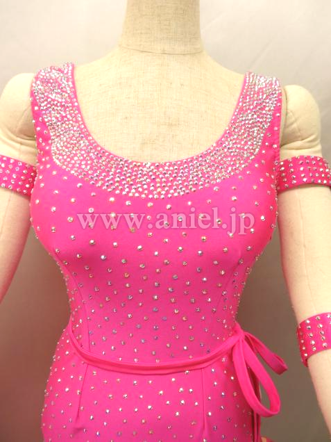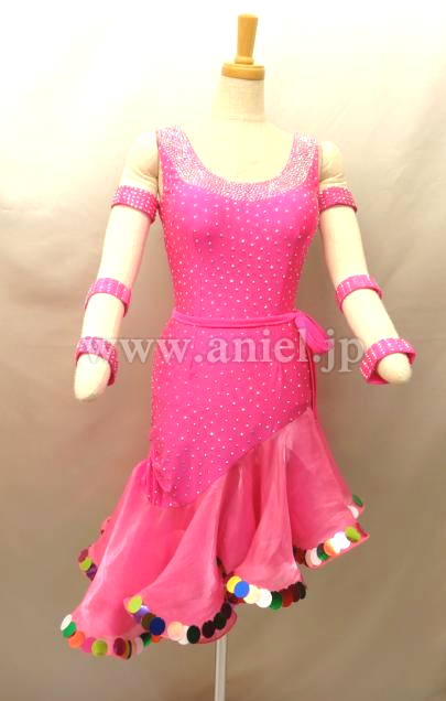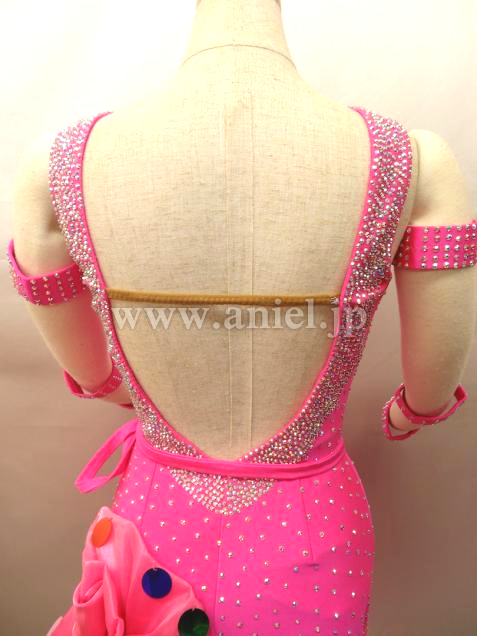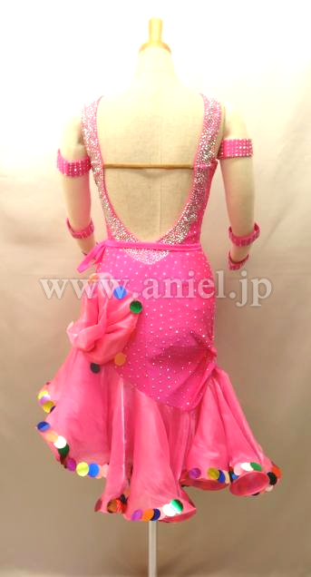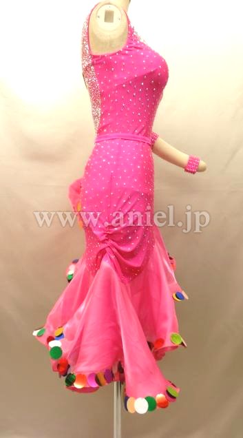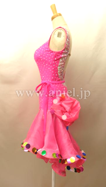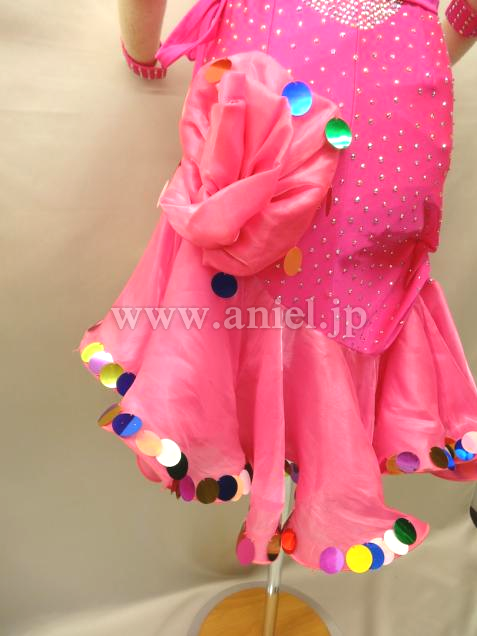 装飾にはスワロフスキーを使っています。回転すると裾のカラフルスパンコールがキラキラと輝きます。