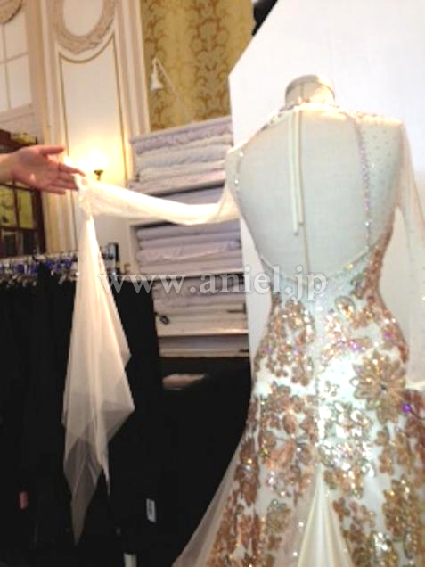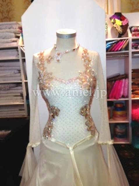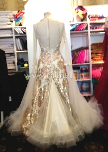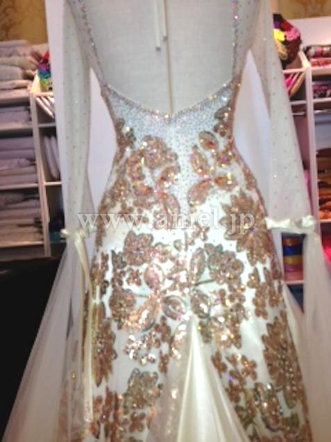 デザインされたゴージャスなドレスです。大きなストーンがスパンコールの上に