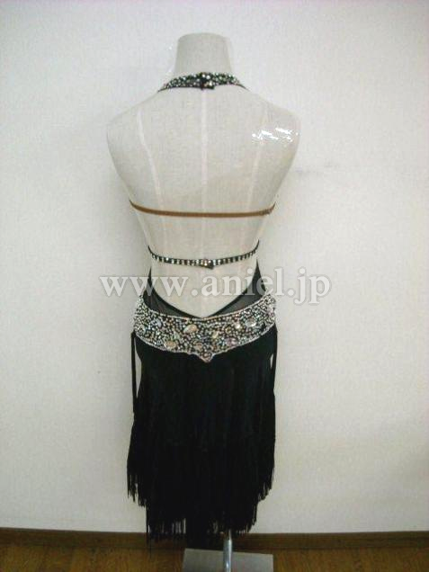 スカートはフレアなので、とても良く踊ります。更に、フリンジもついているため、動きがとても良く見えますが、軽くて踊りやすいドレスです。