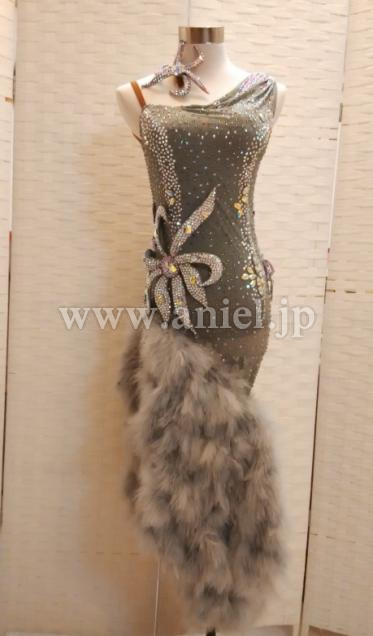 スカートに斜めラインでつけられたオーストリッチがとてもゴージャスな雰囲気を出しています。