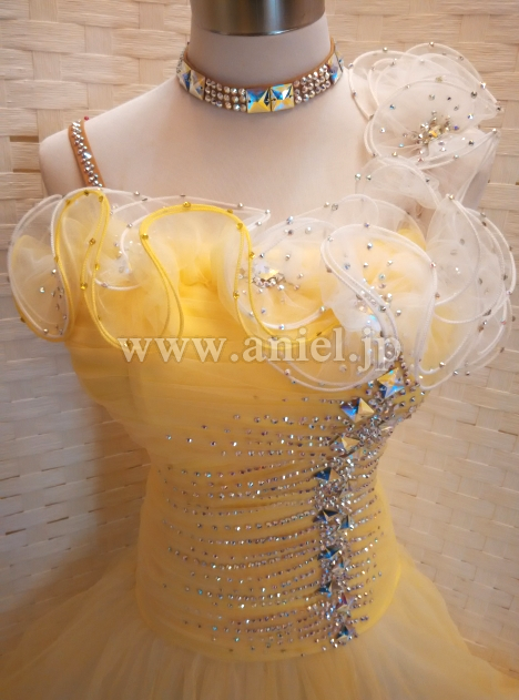 ホワイトのインナーに被せられたイエローのチュールスカートはよく踊り見た目にも軽やかです。
