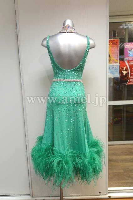 美しい緑のドレスにスワロフスキーストーンが大量に散りばめられています。