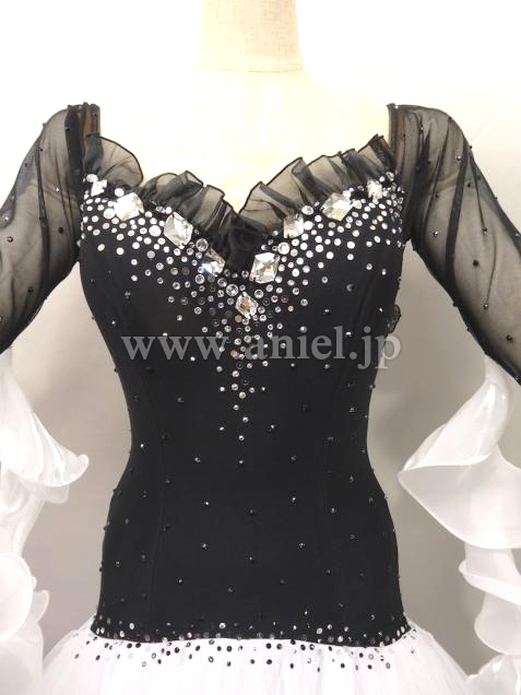 黒のボディに流行りのボリュームチュールスカートがコントラストになっています。
