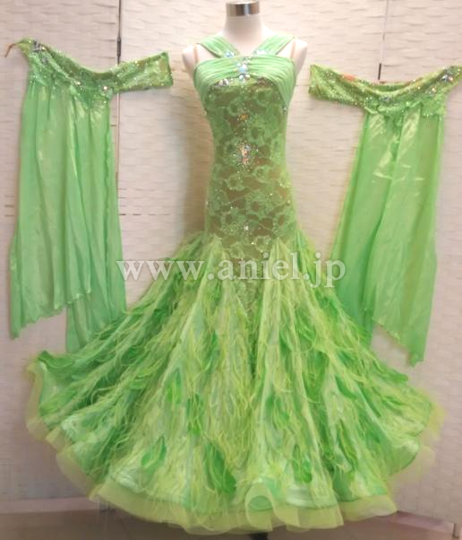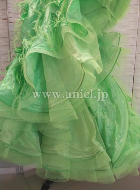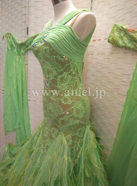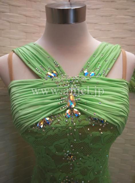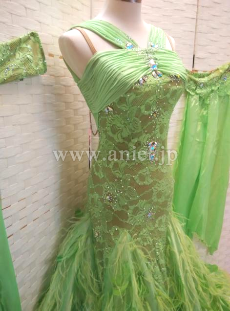 レースが美しいシトラスグリーンのドレスです。とてもエレガントなデザインです。