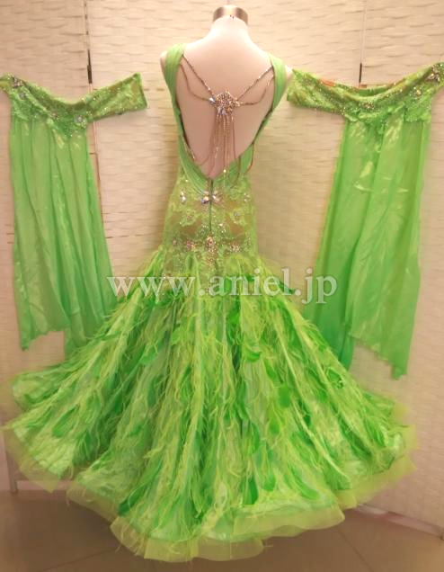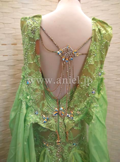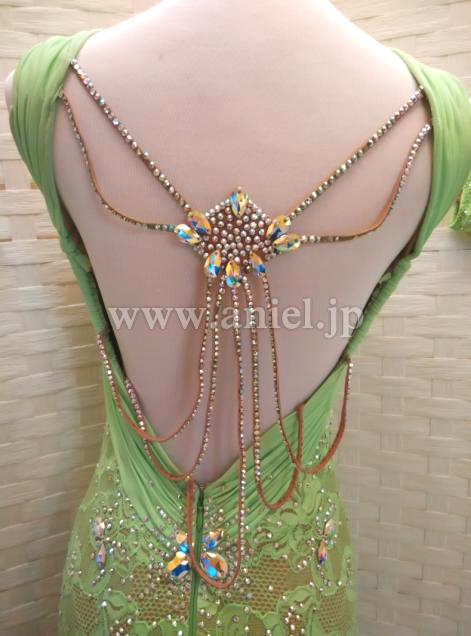背中にはスワロフスキーストーンがデコレーションされた飾りが付けられ踊る度に揺れます。