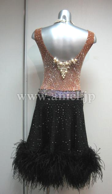 ボディはスワロフスキーストーンでラインが入れられ、裾には羽根が使用されとても豪華です。