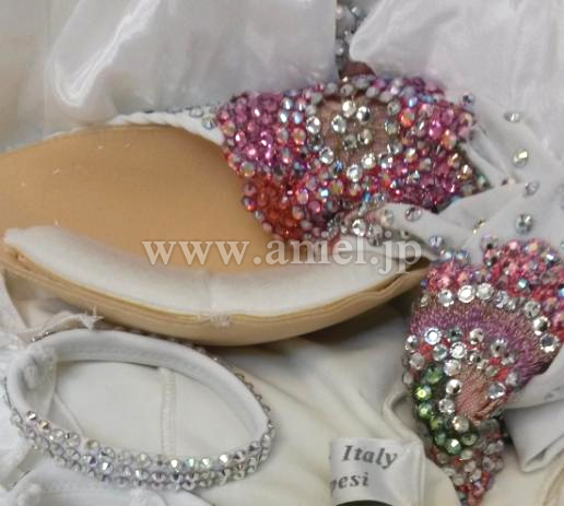 白のボディにピンクのモチーフが貼られキラキラとよく輝きます。