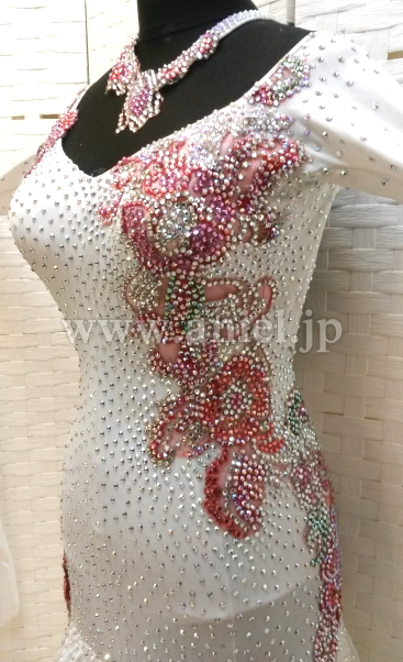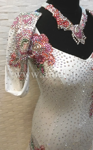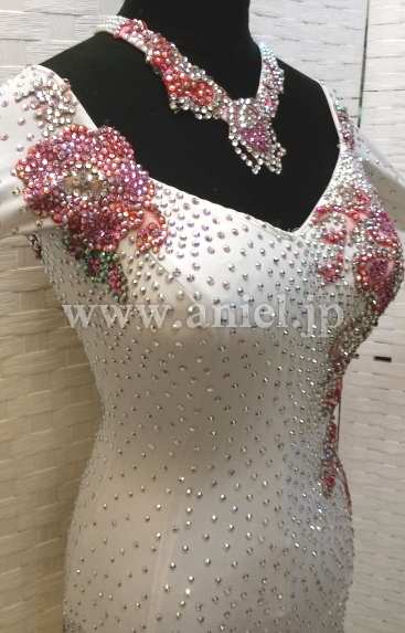 両長袖で露出を控えたい方にもおすすめのデザインです。全身に大量のスワロフスキーストーンが使われているのでとてもゴージャスです。