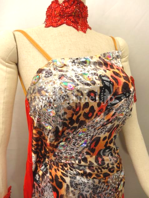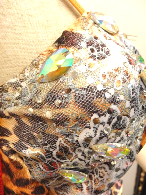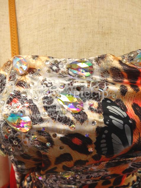個性的でフロアでは強く見えます。裾のフリンジ部分がよく踊ります。アクセサリーにはストーンがたくさん使われています。写真は現状です。
