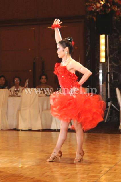 プロラテンA級の先生から譲って頂き、デモに3回着用しました。デコルテ背中にバラの立体モチーフ、裾にホースヘアが豪華に付けられてスタイルを良く見せるデザインです。赤が鮮やかでスカートがよく踊る評判の良いドレスです。全体にストーンとスパンコールが付けられ輝きます。少し石取れがありますが、クリーニング済みです。バラつきのバングル2本とヘア飾りやチョーカーになるバラが小物で付きます。