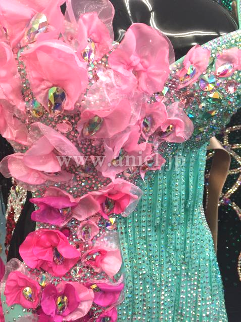 ボディには大粒スワロフスキー付きのピンクの小さな花が沢山ついており、