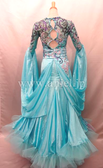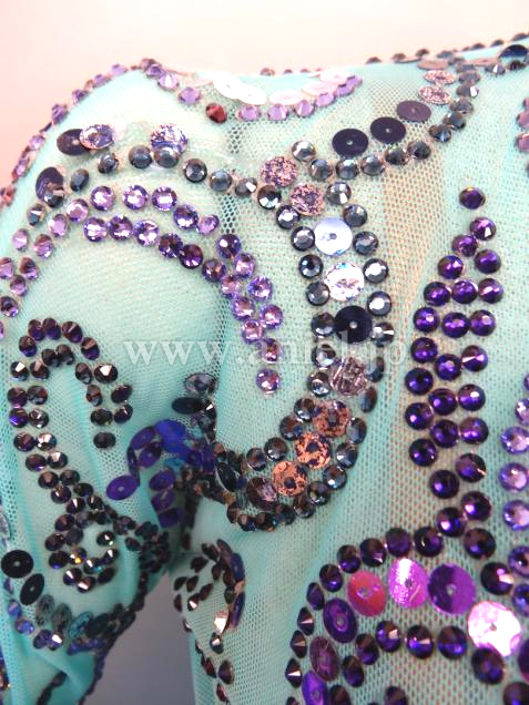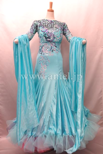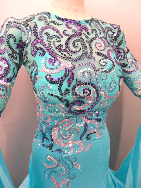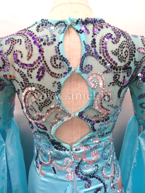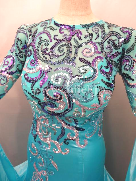 スワロフスキーストーンとスパンコールで施された模様が美しいドレスです。