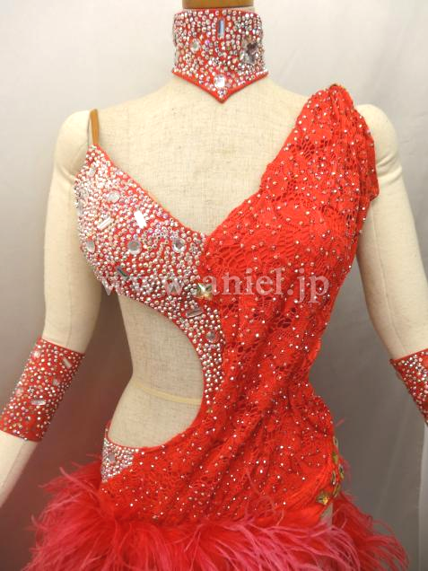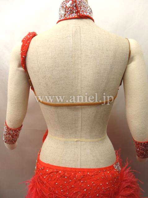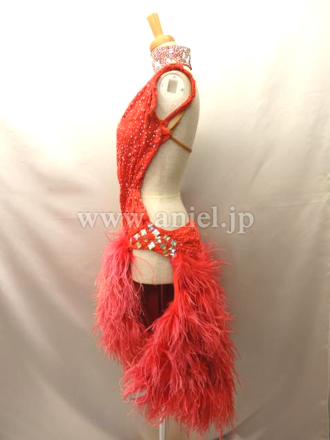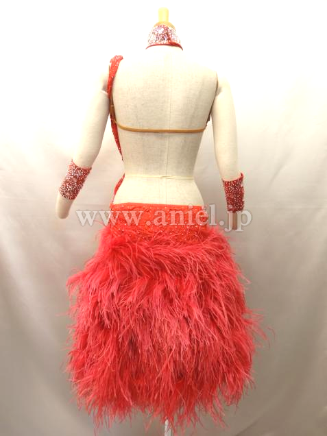 ゴージャスで華やかなドレスです。背中は大きく空いているのでセクシーですが、ふわふわのフェザーがキュートさも与えてくれます。
