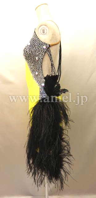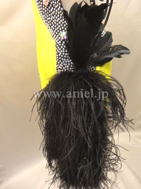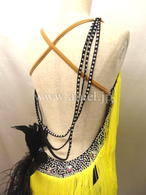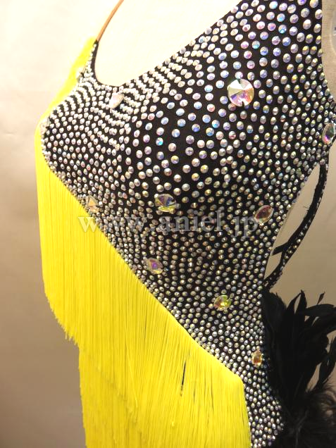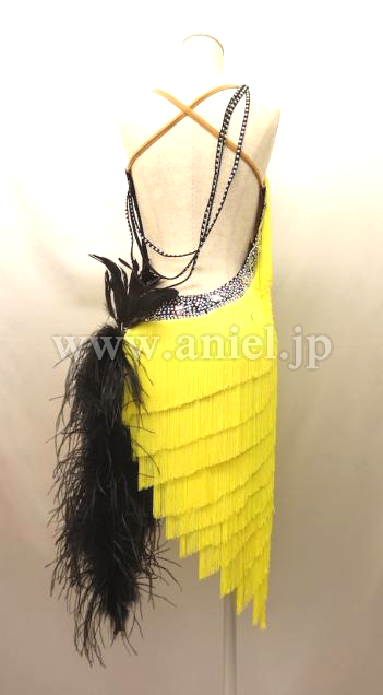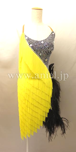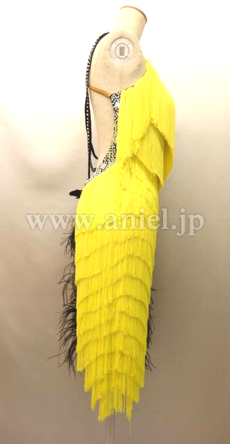 黄色と黒のフリンジドレスは派手な配色なので目立つと思います。