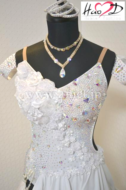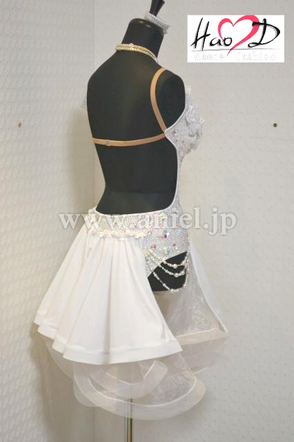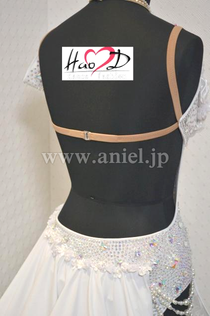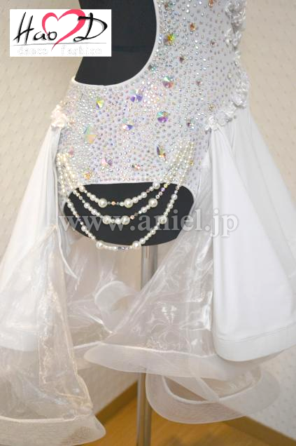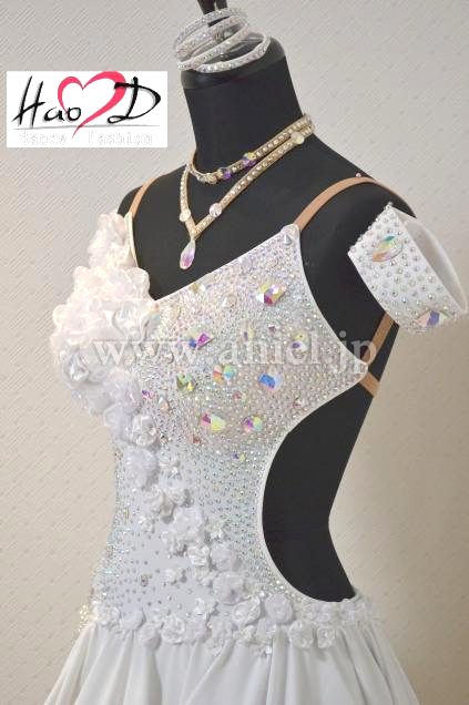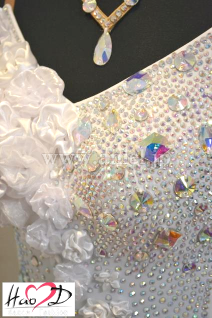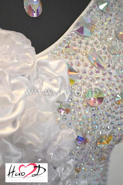 ★白い身頃には、オーロラ虹色の大小粒石を満遍なく貼り付け、キラキラ輝いてフロアーで大変良く目立ちます;