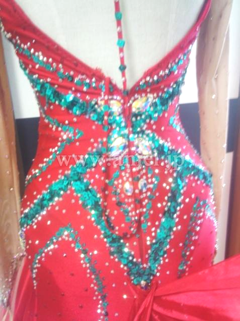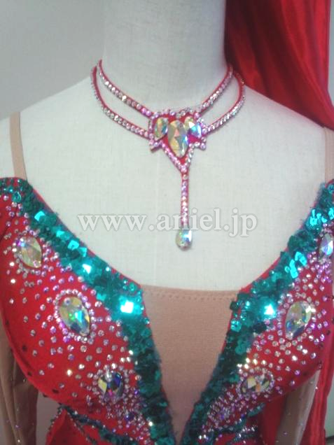 ネックレスは背中のブラウンジから着いており、流行りの形、