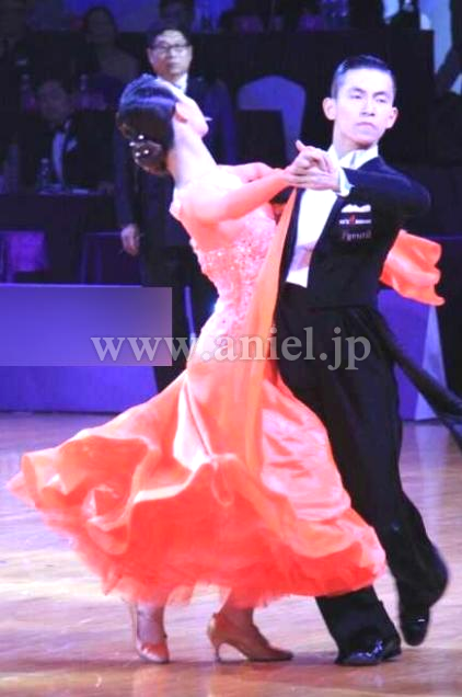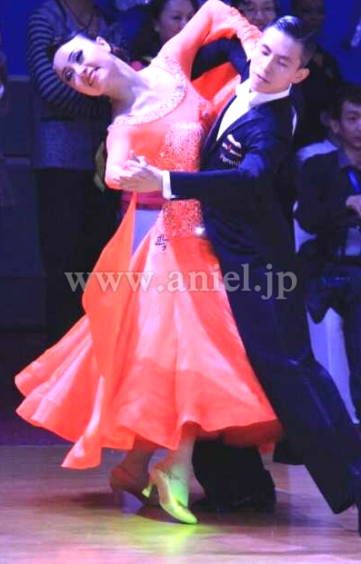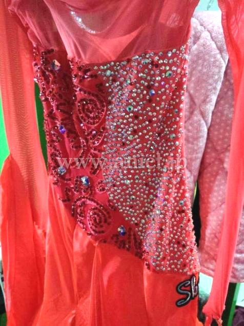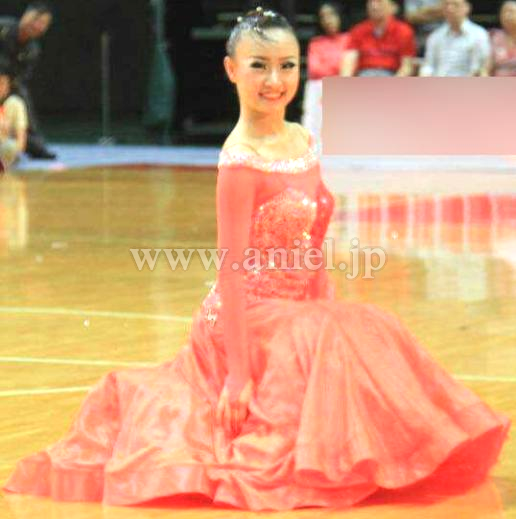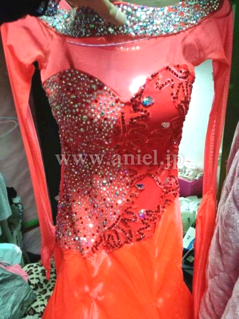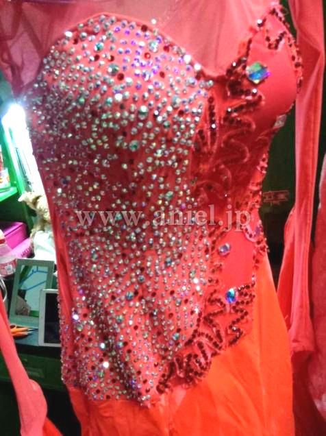 首元やボディはたくさんのスワロフスキーストーンで飾られています。スカートはボリュームがありよく踊ります。