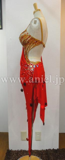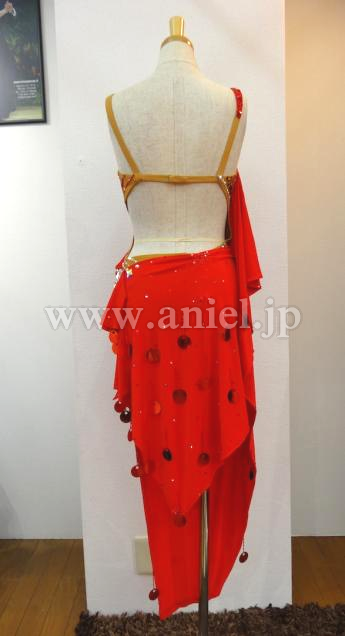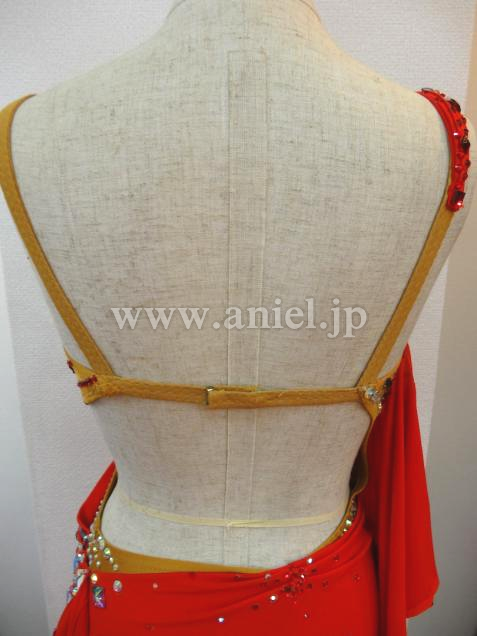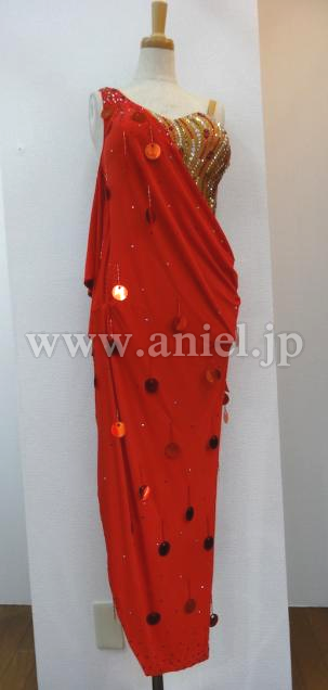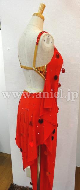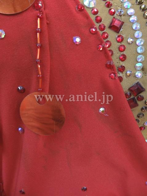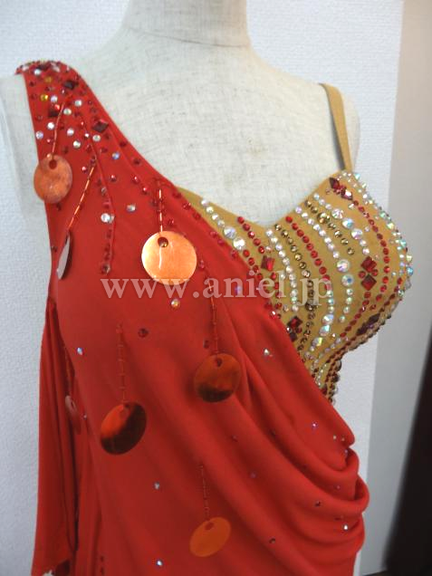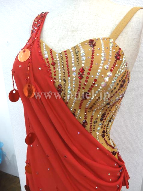 ボディはストーンでラインが描かれています。ドレープ生地にはスパンコールが揺れるようにつけられ、踊るとキラキラと光り綺麗です。