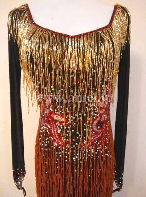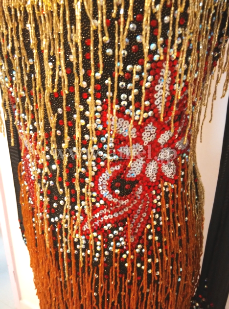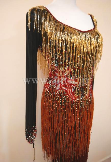 ボディにたくさんつけられたビーズフリンジがとても豪華なドレスです。