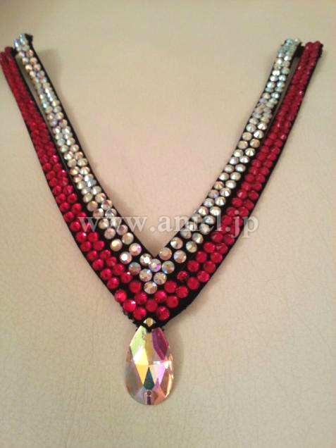 たくさんのチェコ製ラインストーンもたくさん飾られています。長袖で露出も低いデザインなので肌を出すのに抵抗のある方にもおすすめです。
