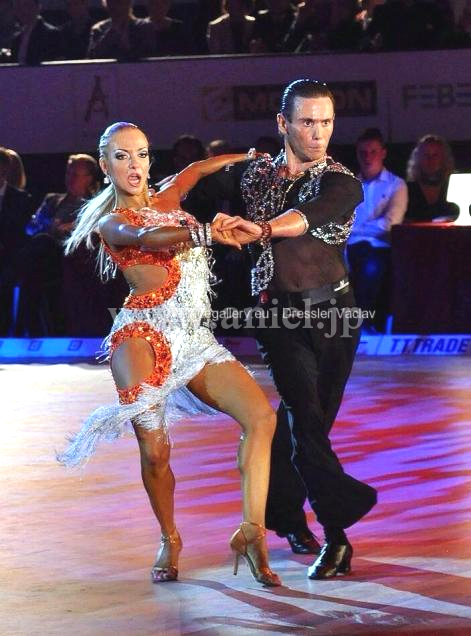 スペインの素晴らしいブランド、Abraham Martinezが製作した、WDSFアマチュアラテンランキング1位のArmen Tsaturyan - Svetlana Gudyno組のスポンサードレスです。