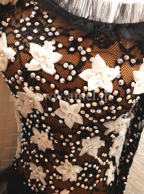 ボディのレースにはたくさんのスワロフスキーストーンが散りばめられとてもきらびやかです。