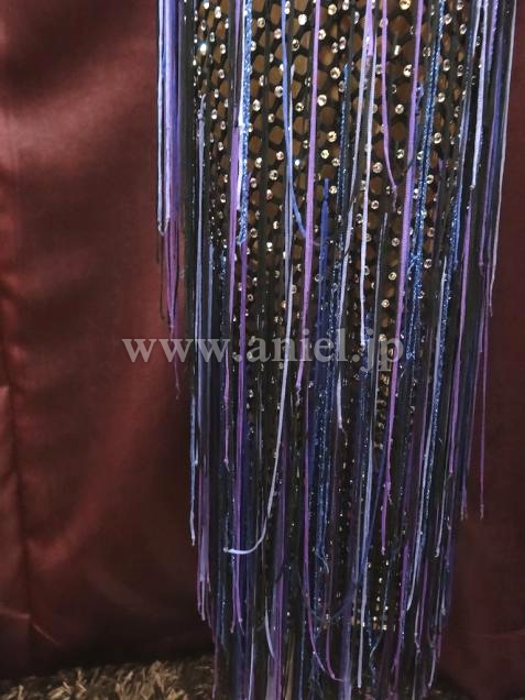 青紫のモチーフレースにもストーンがたっぷり貼られ立体感を出しています。