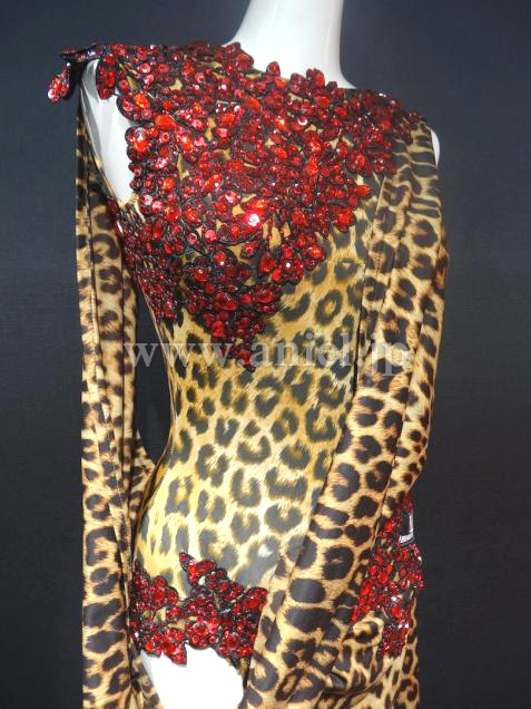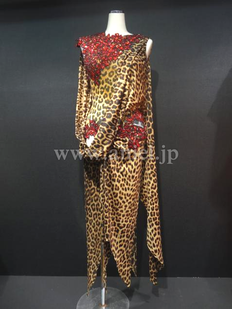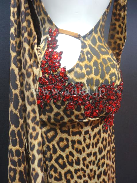 インパクトのある豹柄のドレープが非常にかっこいいドレスです。