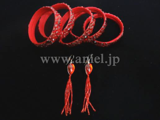 赤のモチーフレースにはストーンがびっしりと貼られアクセントになっています。