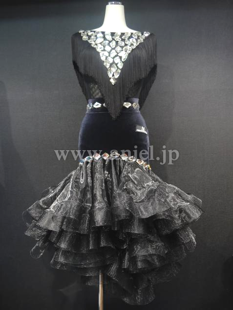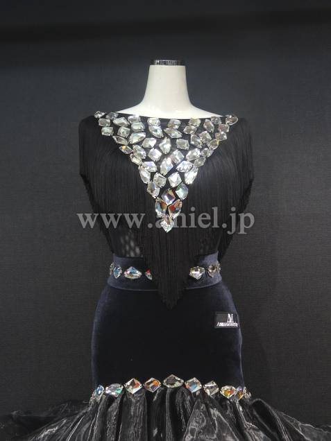 胸元やベルトには大きなクリスタルストーンがびっしりと使われ光が当たるとよく輝きます。