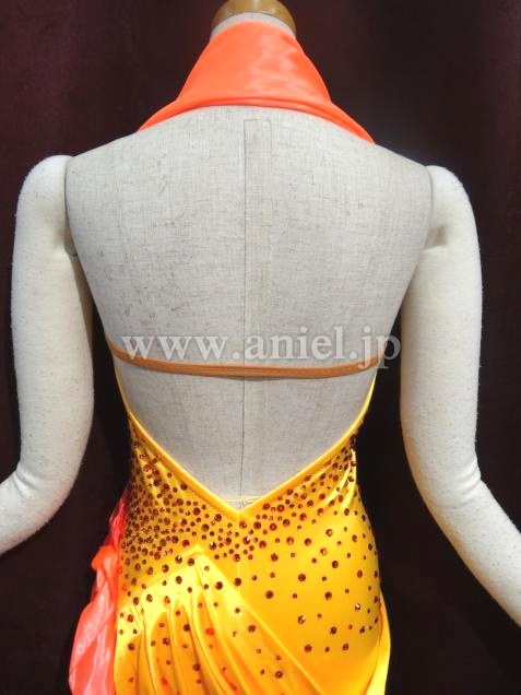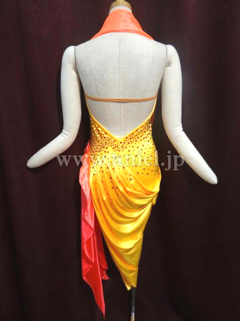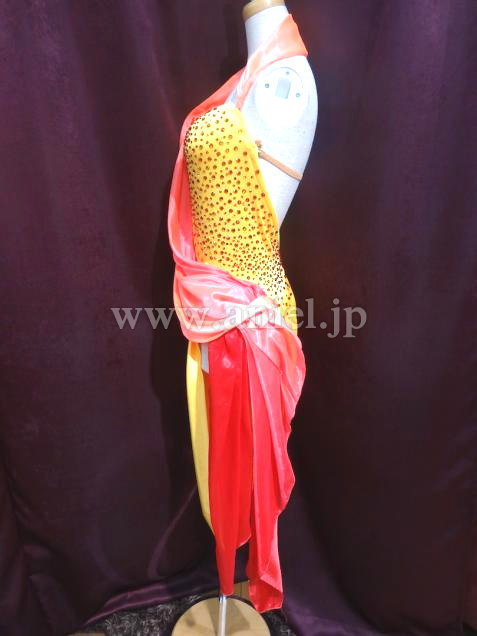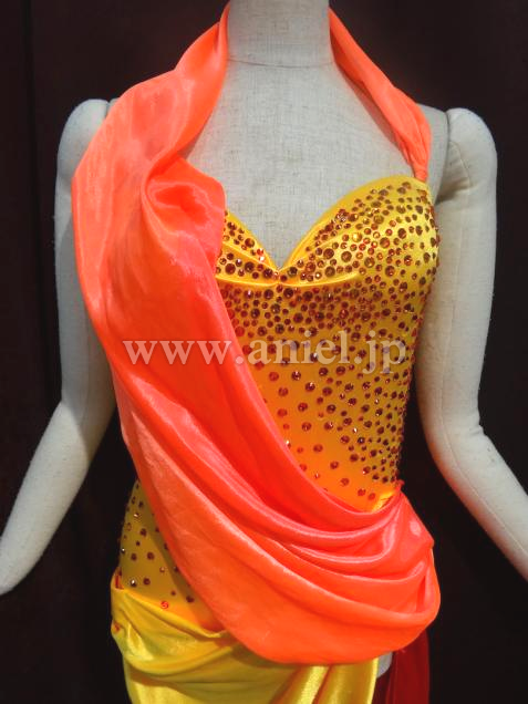 ボディは黄色のストレッチが効いてる光沢のある生地で作ってあります。