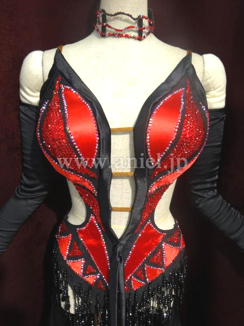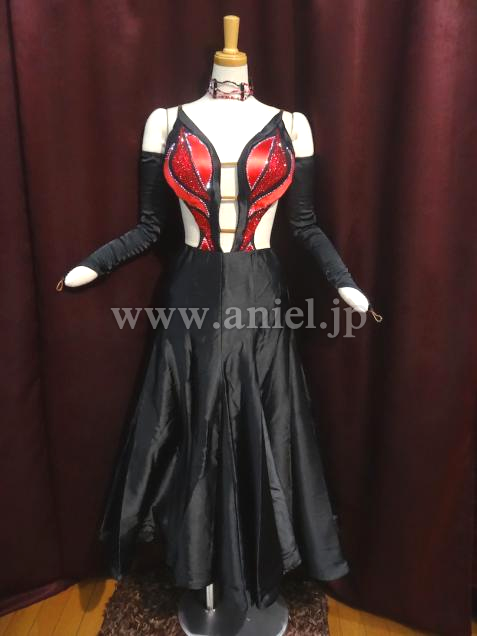 または、タンゴからパソドブレのようにパソドレスとしてご使用していただいても、裾まわりの長さがあるので綺麗に弧を描いてスカートが舞ってくれると思います。