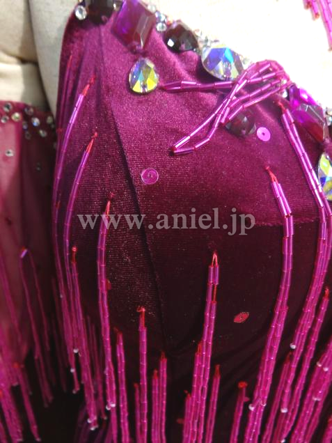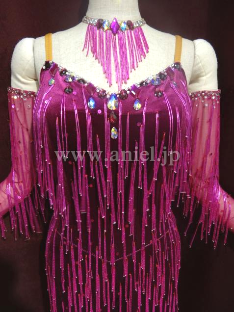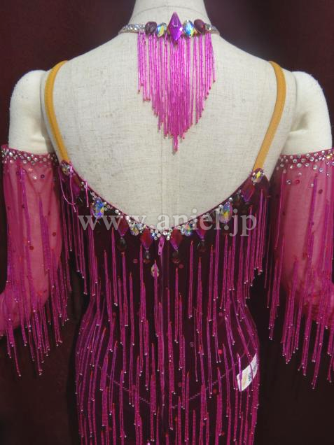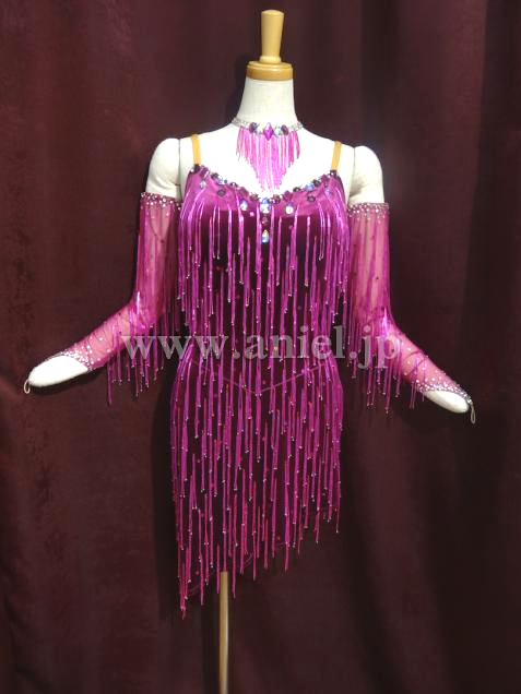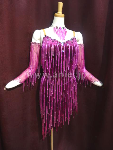 シンプルなデザインですがビーズフリンジが付いているので、動きが見えるし足長効果バツグンのドレスです。