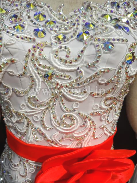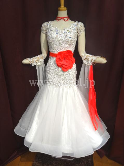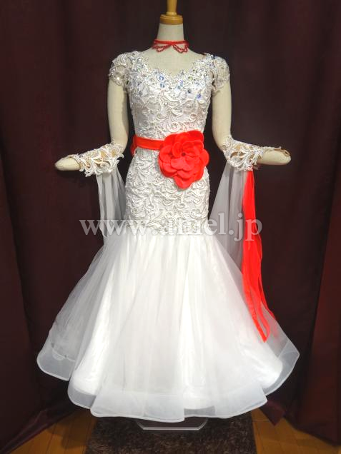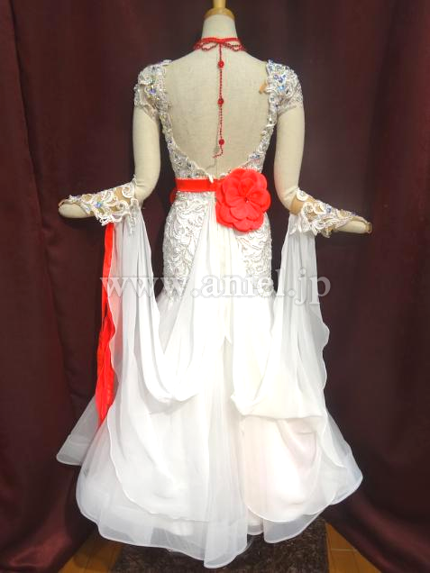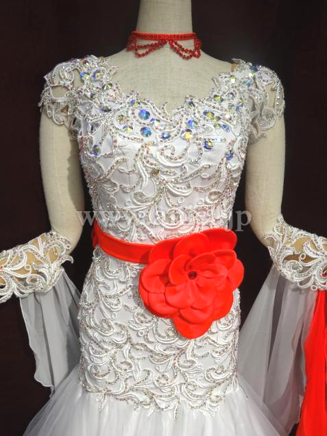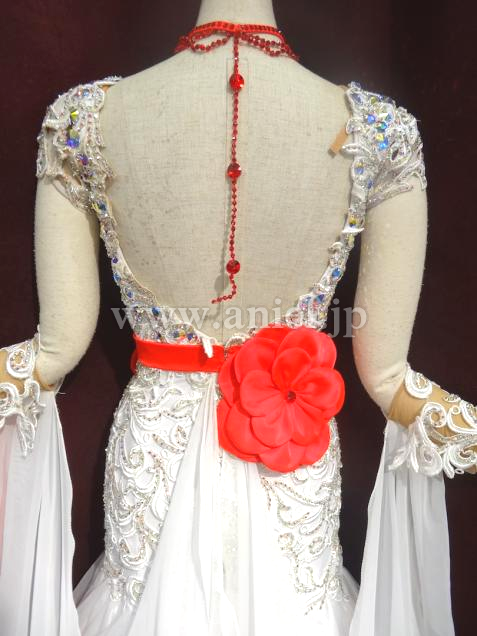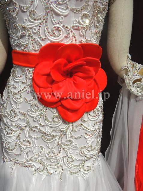 MARABO社よりメンテ済みで購入しました。とても気に入りましたが試着不可だった為サイズが合わず出品します。一度も着用していません。ボディーのレースモチーフにびっしりのスワロと鮮やかなお花の飾りがついています。スカートの中とフロートにも赤が使われていて踊ると目を引くと思います。赤のスワロのチョーカーとイヤリングが付属しています。