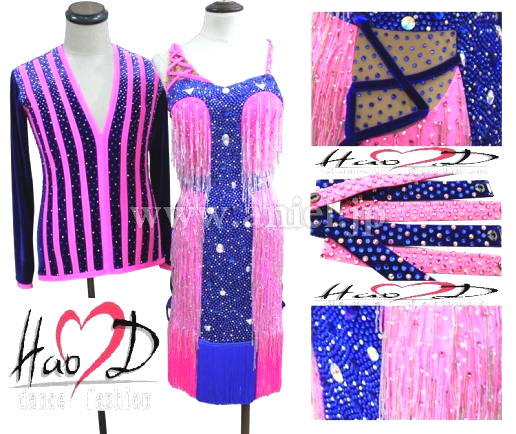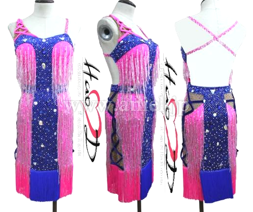 タイトなIラインスカートの裾に、良く踊るフリンジを装飾し、更に太ももまでスリットを4本入れて躍動感をプラスし、足さばきをより早く綺麗に見せる;