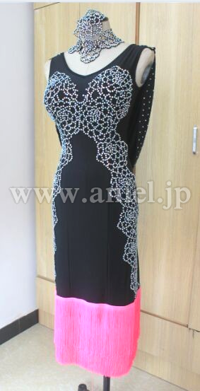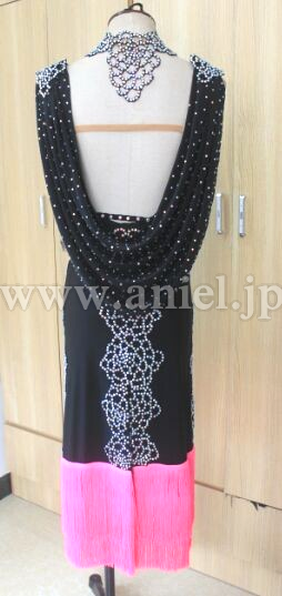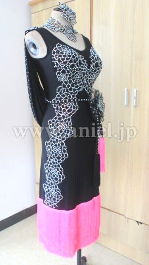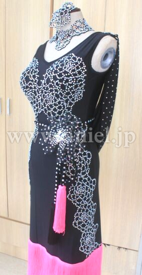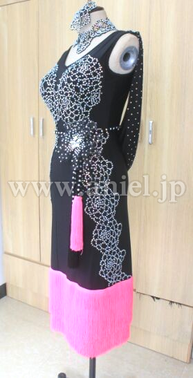 黒にレーシーな模様 & 蛍光ピン色のフリンジ;