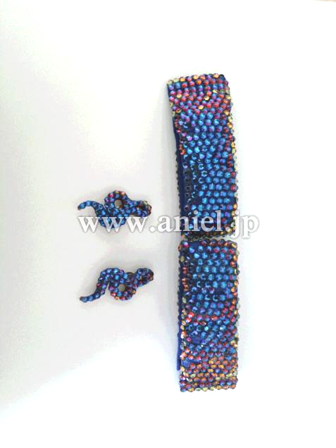 ストーンは青色ですが、光の角度によって虹色に光ります。