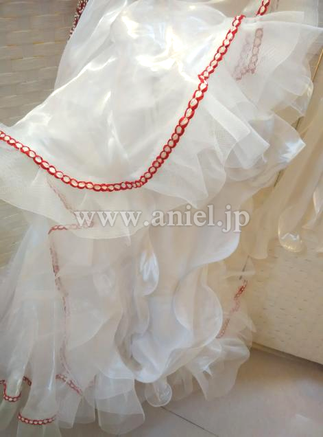 スカートの生地は光沢がありよく輝きます。
