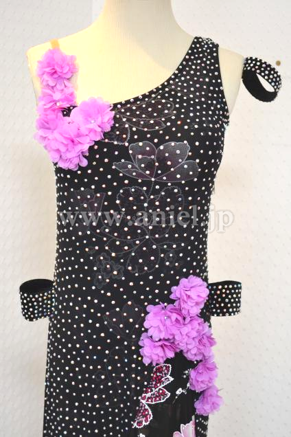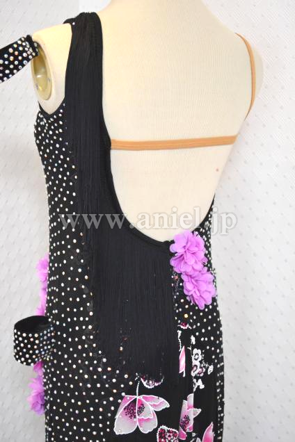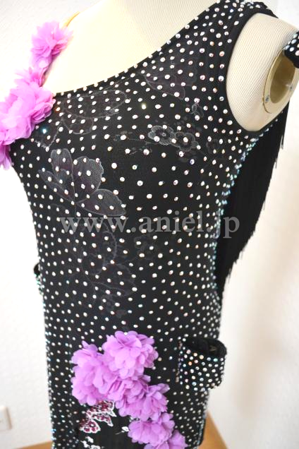★肩からヒップの縁にフリンジを斜めに付け、回る時にボリュームと動きをアップ;