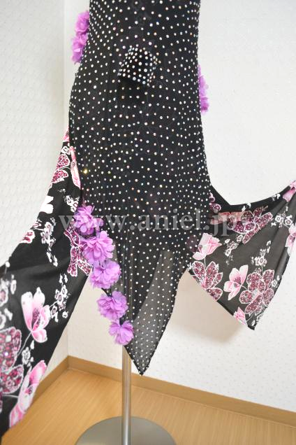 黒ベースに花柄;